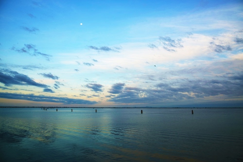 Tag: nuvole, cielo, mare, acqua, orizzonte, tramonto, pali, azzurro, luna, riflesso, lago, terra, laguna, bianco.