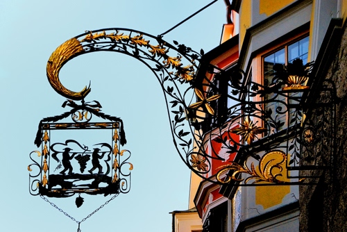 Tag: insegna, ferro, oro, cielo, grappolo, finestre, uva, metallo, catena.