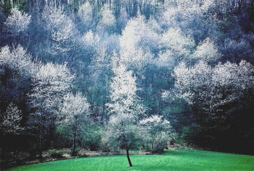 Tag: alberi, prato, bosco, primavera, bianco, verde, fioritura, bianchi, fiori, luce.